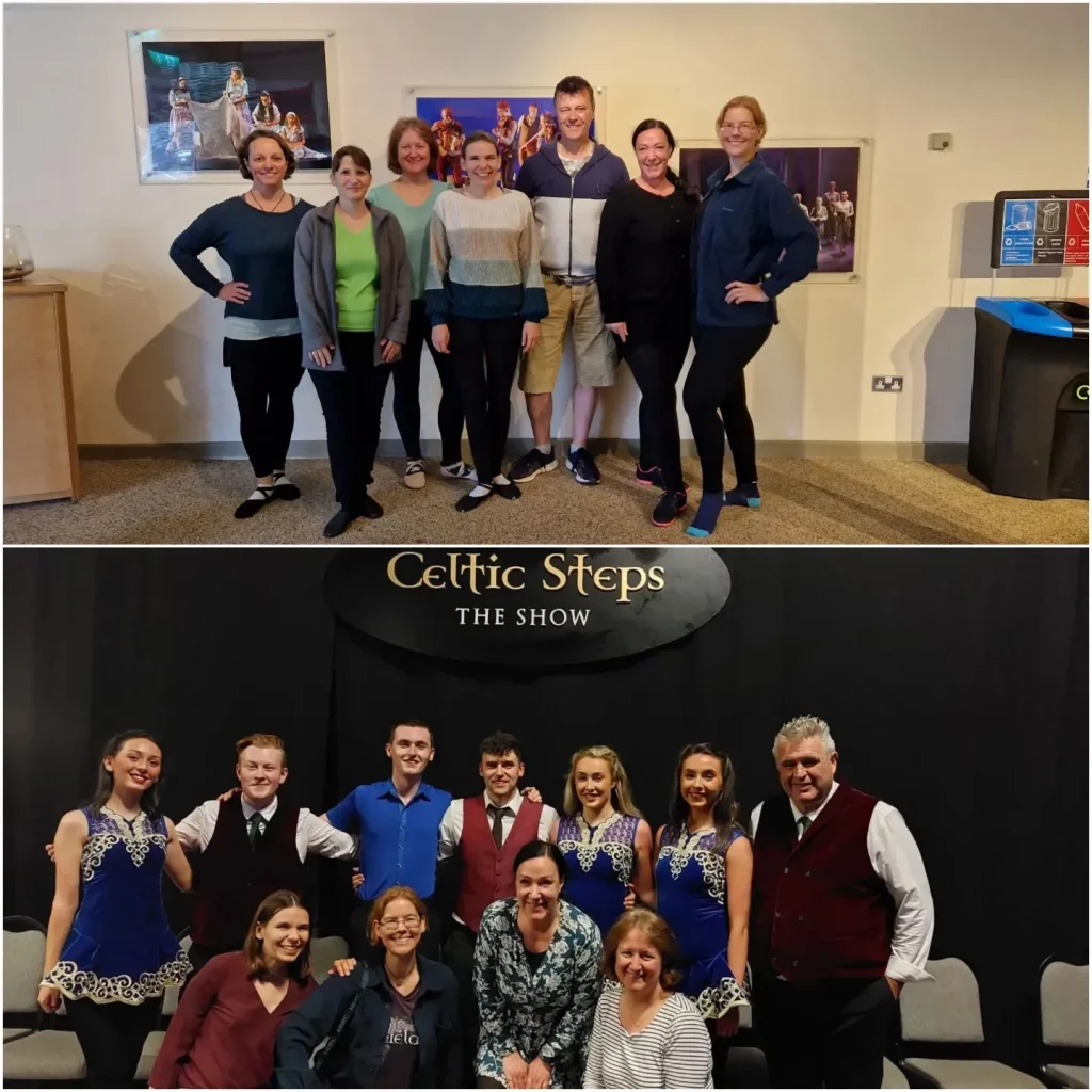Top: First Munnix Workshop with Jonathan Kelliher in Tralees Siamsa Tíre Theatre. Bottom: With artists from the „Celtic Steps“ Show in Killarney after their performance. Mighty fun indeed!